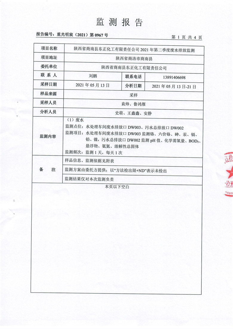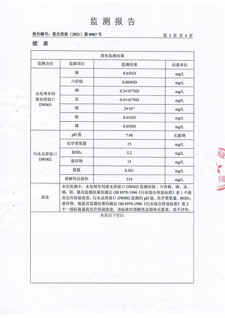 2021年第二季度废水监测报告
